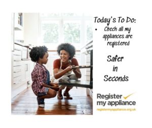 Register my appliance is a public information safety campaign which encourages people to register their domestic appliances so manufacturers know where the products are in case a safety repair is ever needed.